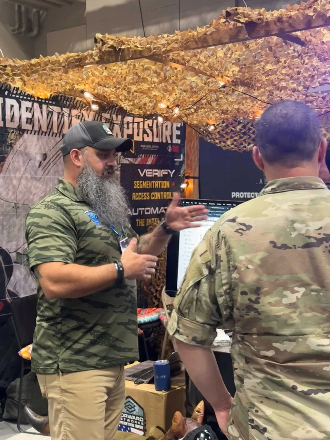 Alert: Incoming humble-brag: While I did receive plenty of praise for capturing the haphazard vibe of an expeditionary operation (i.e. what tired 19 yr olds would hastily build in the desert), witnessing past/present DoD technologists light up during a live demonstration was far more satisfying. That’s why we trucked in camo netting, crates, and burn barrels– to show how Forward Networks understands the USAF cyber challenges and that Forward Enterprise is here to help. What resonated wasn’t expensive swag or slick marketing slides. Instead it was the moment when they realized they could finally see and query their entire network instead of struggling with outdated diagrams and tribal knowledge.